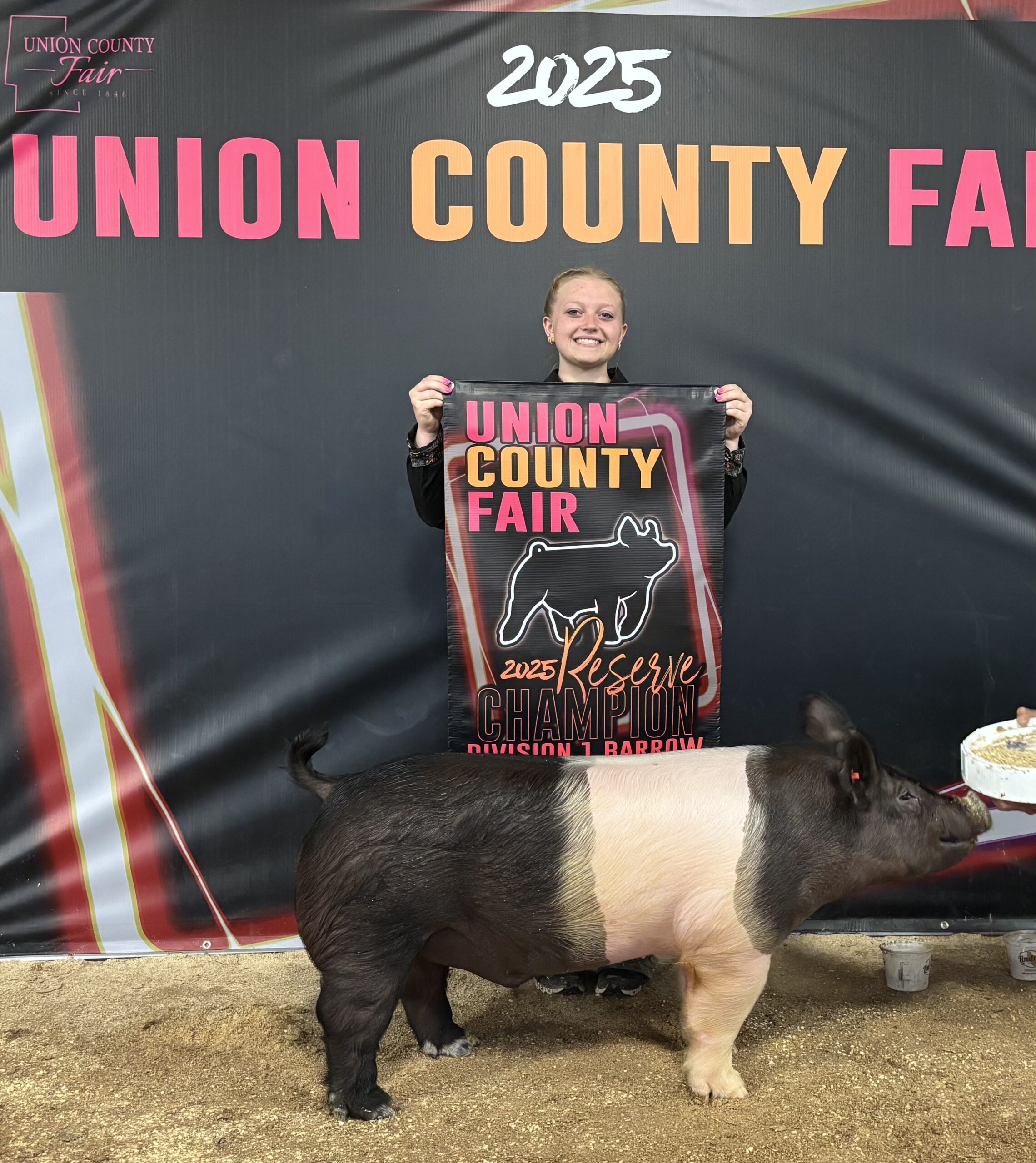 Grand Champion County Born and Bred Barrow and Division 1 Reserve ChampionCONGRATULATIONS RILEY WENDT 2017 Union County Fair Jr. Show